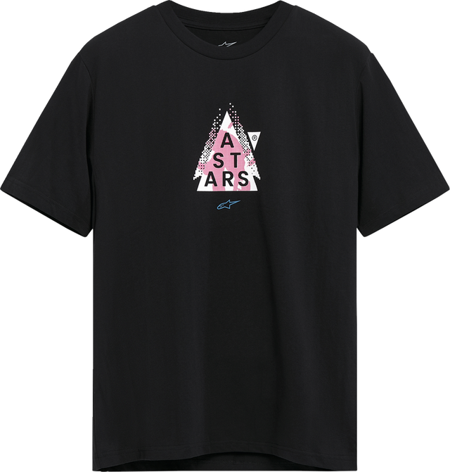 Icon graphics with pixelled camo fill on front and Astars script on back of the t-shirt