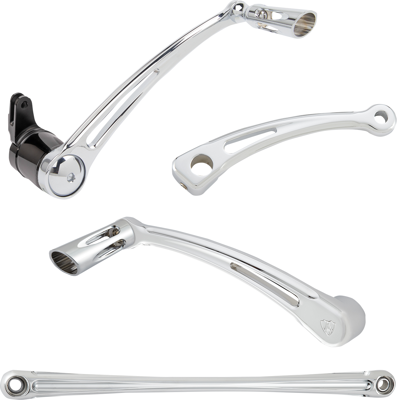 3D conical Deep Cut® shift pegs are CNC machined from billet aluminum and included with both brake arms and shift arms