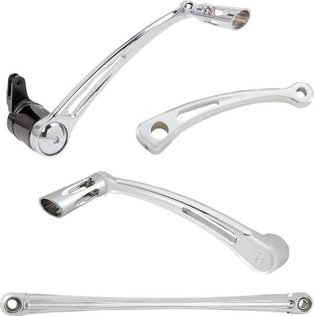 Kit includes an inner shift arm, brake arm, shift rod, and either a solo or heel/toe shifter with pegs