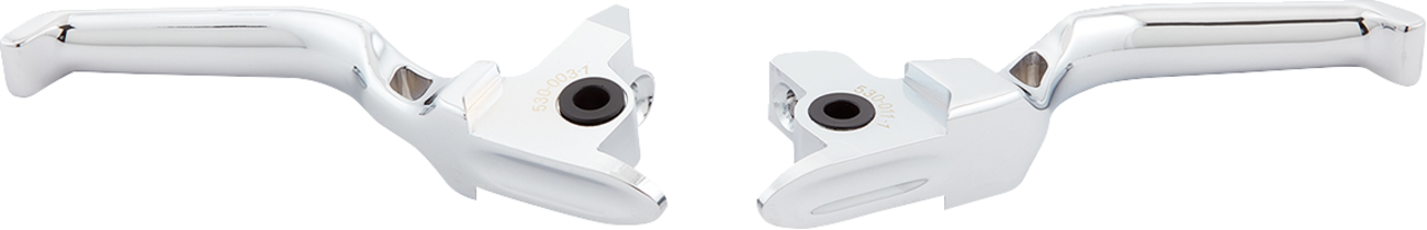 Forged hand levers feature a performance-inspired design with an ergonomic shape & shorty length