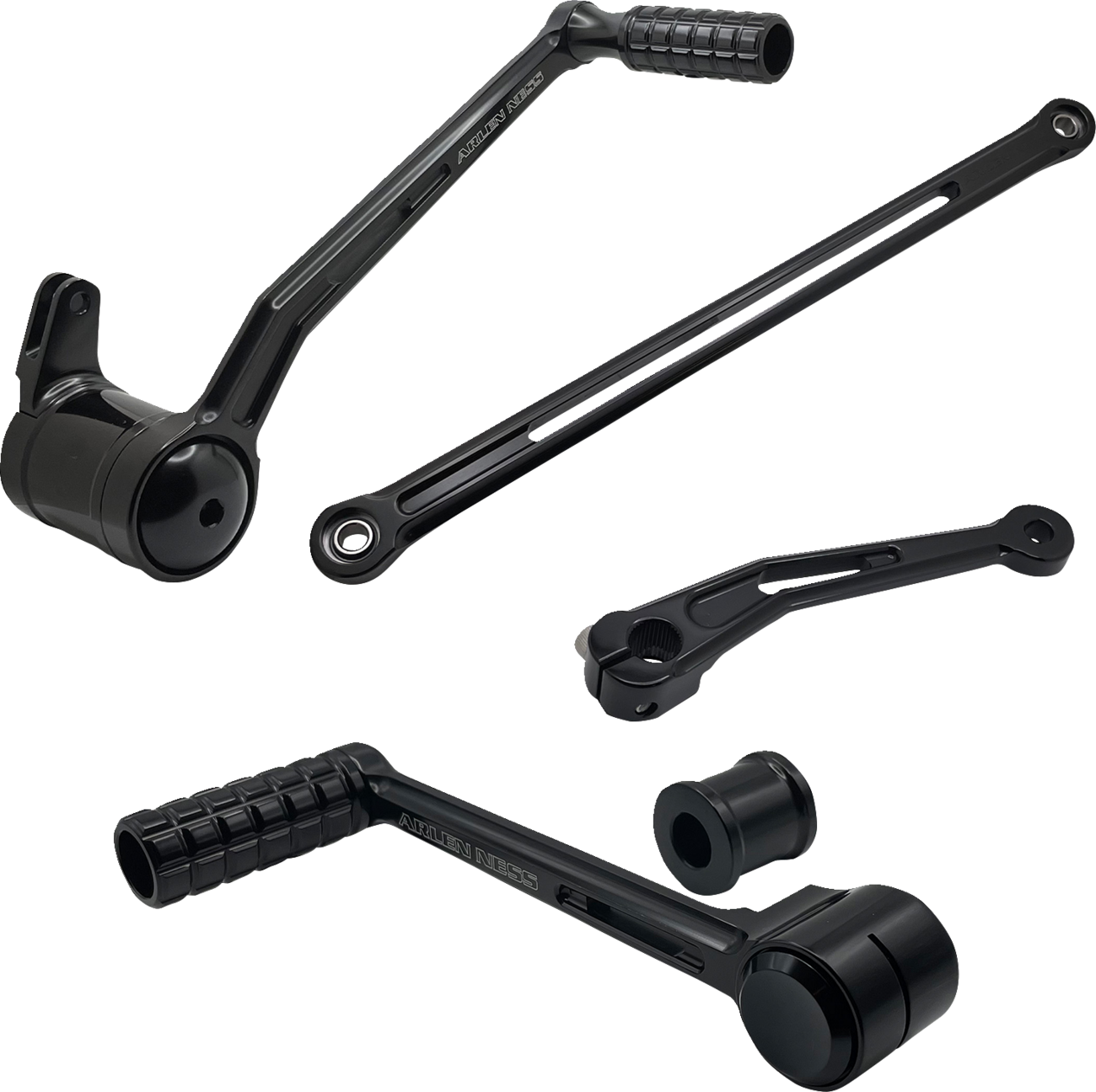 Kit includes brake arm, shift rod, inner shift arm, & either a solo or heel/toe shifter with pegs