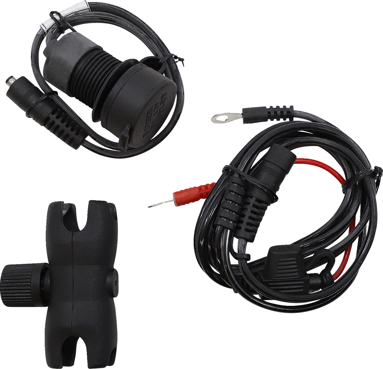 Stylish looking handlebar mount comes with 5 volt/2 Amp dual USB ports, 1\" ball attachment (for attaching RAM mount accessories) and water-resistant safety cap with built-in switch