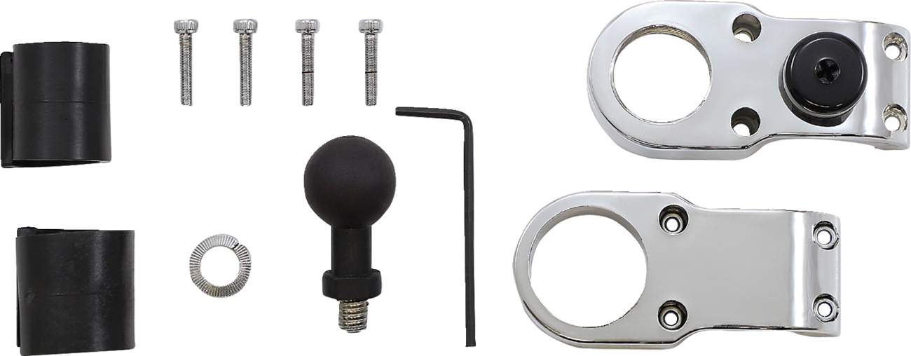 Handlebar mount fits 7/8\", 1\" and 1.25\" bars with required spacers for all three sizes