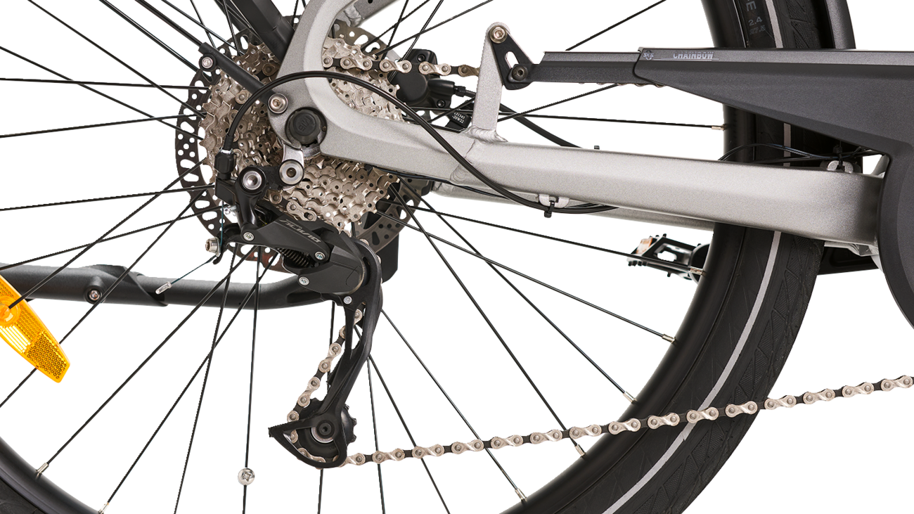 City tuned 80 Nm/350 W mid motor with Torque/Cadence sensing and throttle delivers a powerful and intuitive natural riding experience