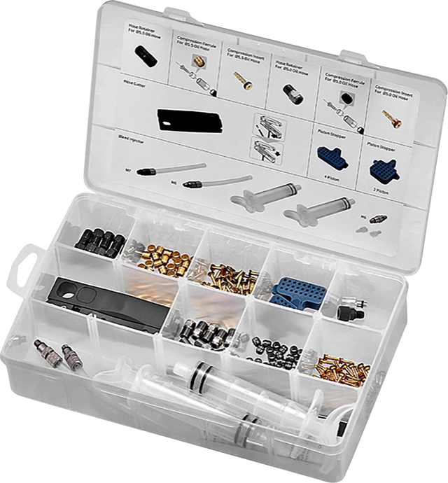 Includes all parts and tools needed to service TRP and Tektro brakes, just add mineral oil