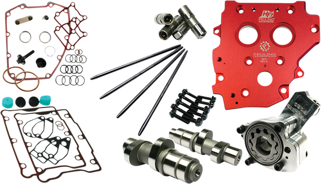 Kit includes Feuling® high volume oil pump, High Flow camplate, Reaper® series camshafts, hydraulic roller lifters, quick install adjustable pushrods or one-piece pushrods, Timken® bearings, gaskets, o-rings, exhaust gaskets, ARP® fasteners, washers moly paste, Loctite®, and hardware