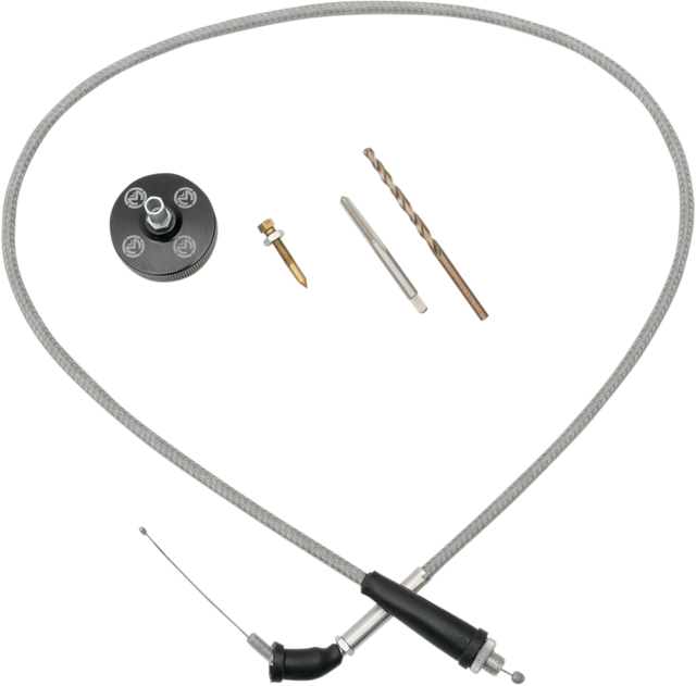 Includes a stainless steel braided cable and Mikuni-style idle adjustment screw