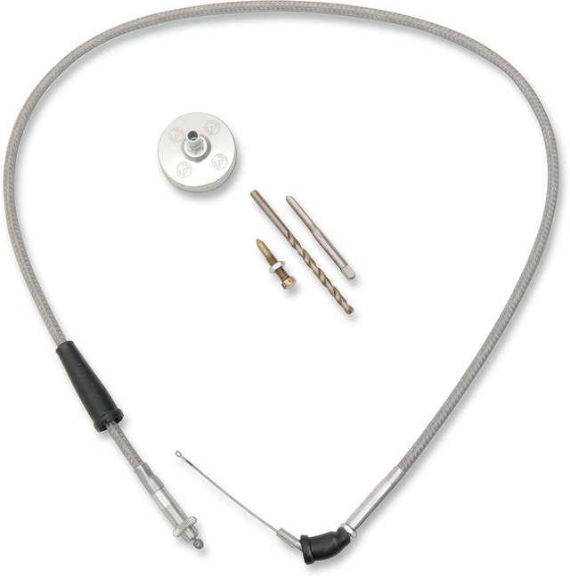 Includes a stainless steel braided cable and Mikuni-style idle adjustment screw