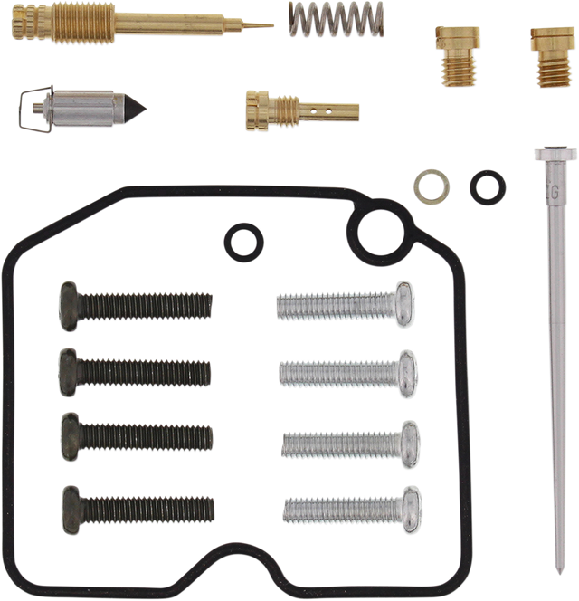 Includes all O-rings, gaskets, jets, needle, mixture screw, float bowl screws, float valve needle and seat