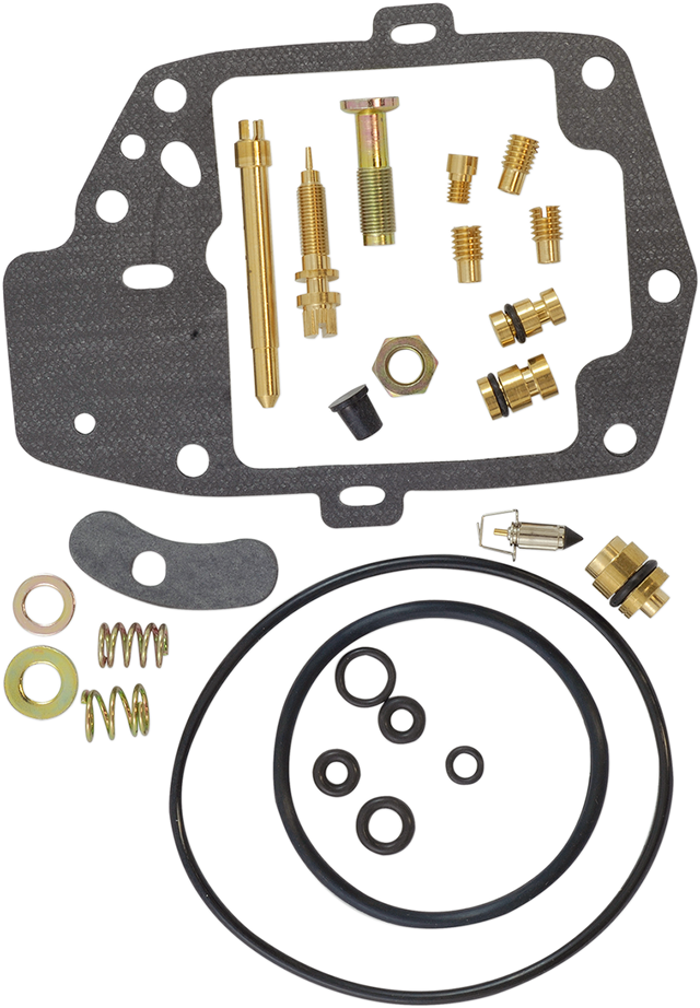 Kit contains all necessary gaskets and jets to rebuild one OEM carb