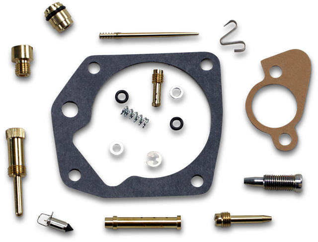 Kit includes main jet, pilot jet, jet needle, float valves, float chamber gasket and O-rings.