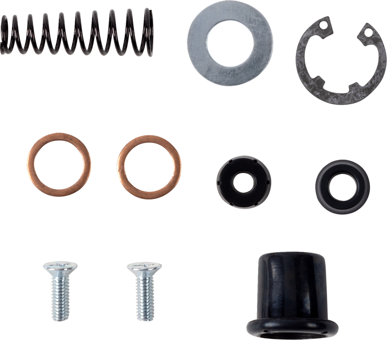Kit contains all the components to re-seal leaking master cylinders: copper washers, cup seals, replacement screws (where applicable) and O-rings