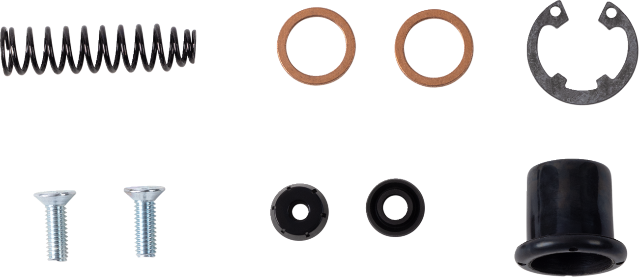 Kit contains all the components to re-seal leaking master cylinders: copper washers, cup seals, replacement screws (where applicable) and O-rings
