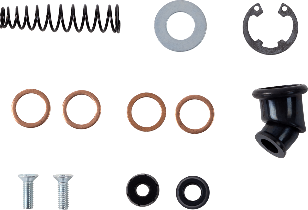 Kit contains all the components to re-seal leaking master cylinders: copper washers, cup seals, replacement screws (where applicable) and O-rings