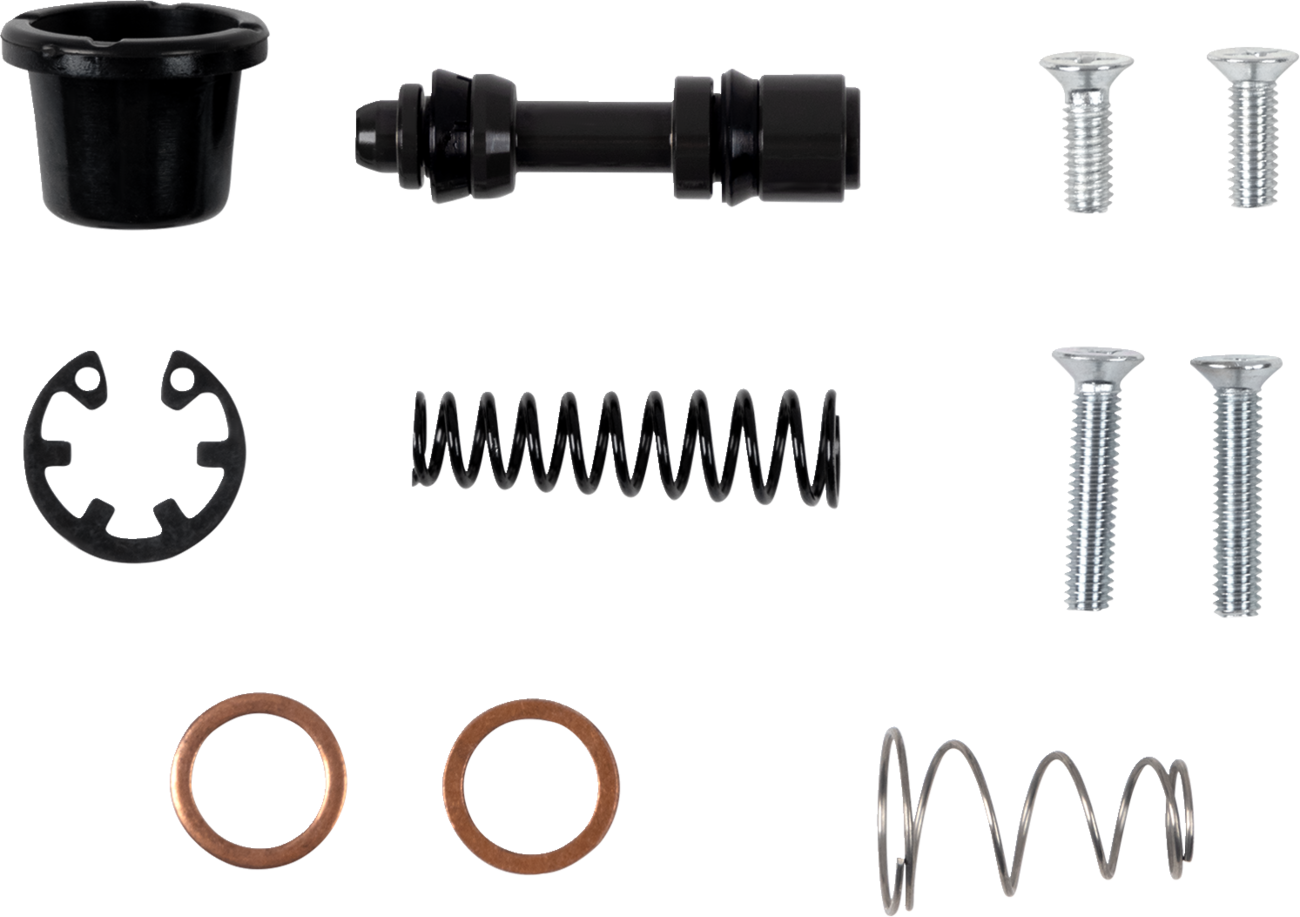 Kit contains all the components to re-seal leaking master cylinders: copper washers, cup seals, replacement screws (where applicable) and O-rings