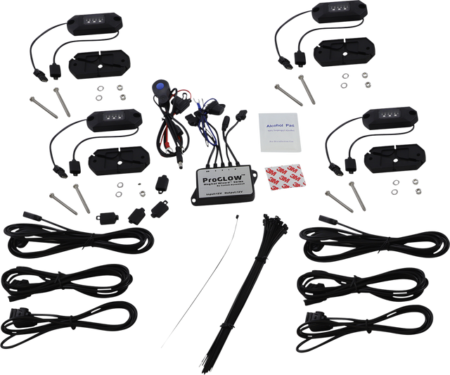 4 tough diecast light pods with three high-power RGB color changing lights each