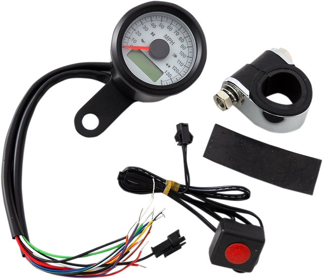 Programmable Speedometer with Indicator Lights - Gloss Black - 140 MPH LED White Face - 1-7/8\" 1999 - 2003 is backordered and will ship as soon as it is back in stock.