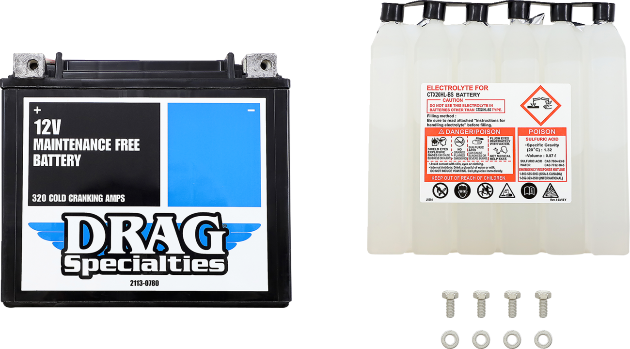 Special-absorbed glass-mat battery eliminates water loss, permitting the battery to be permanently sealed once it is filled with acid; Acid Pack included