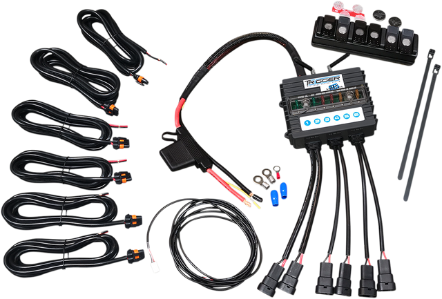 Kit includes six 8’ wire harnesses with the mating connector to the control box on one end and blank wires on the other; Two 12 gauge, two 14 gauge, two 18 gauge