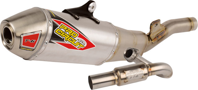 More features offered by the T-6 is the ability to meet AMA amateur racing sound requirements and that it comes equipped with a United States Forest Service (USFS) approved spark arrestor making it easy to alternate between off-road and closed-course racing