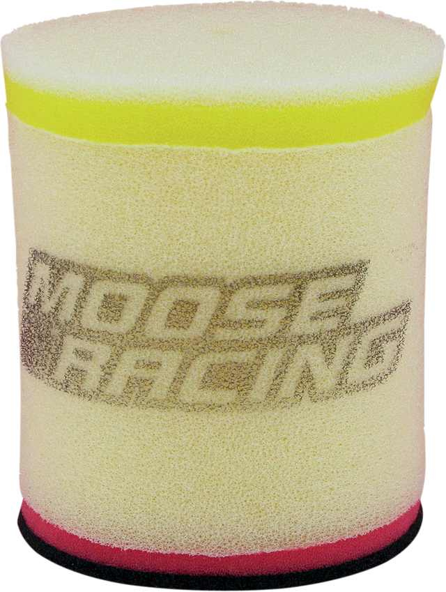 Coarse outer foam traps large particles while fine inner foam catches the finest dust