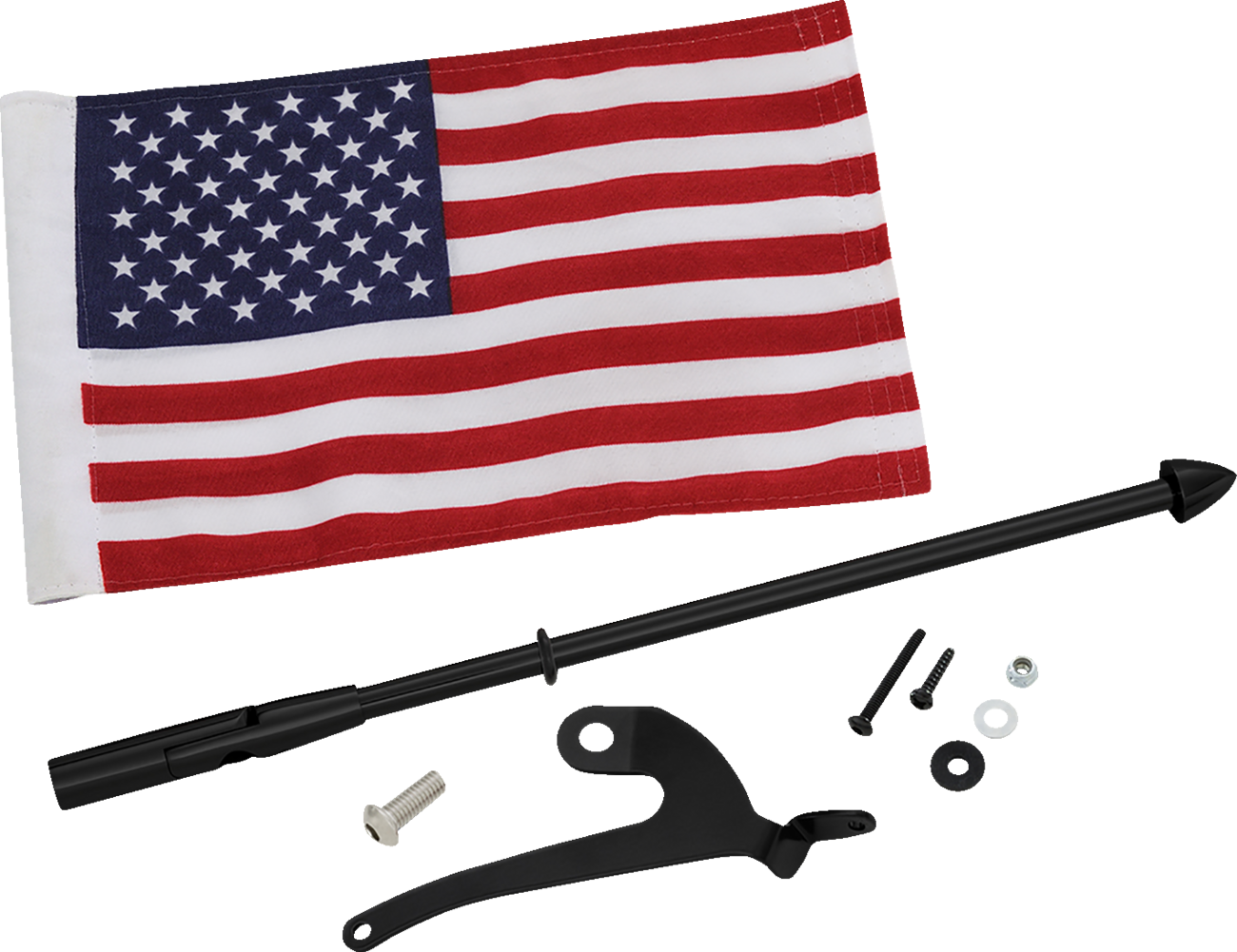 Flag pole supports flags upto 8-3/4\" tall and comes with satin black mounts