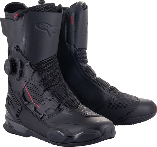 The lower features a TPU heel counter, toe slider, and the Alpinestars Transversal Protection Frame (TPF) on the sole, allowing for high levels of protection against impacts and any bending or twisting