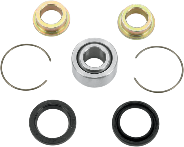 Kit includes the shock bearing, seals, spacers, and pins (if required) to rebuild the upper shock link