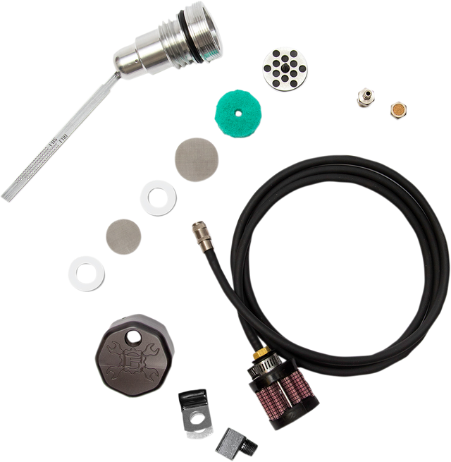 Includes 2 different venting style options for installing the dipstick: option 1 - 1/8 NPT breather vent fitting with internal porous filter element, option 2 - quick disconnect coupler fitting with rubber hose and filter element