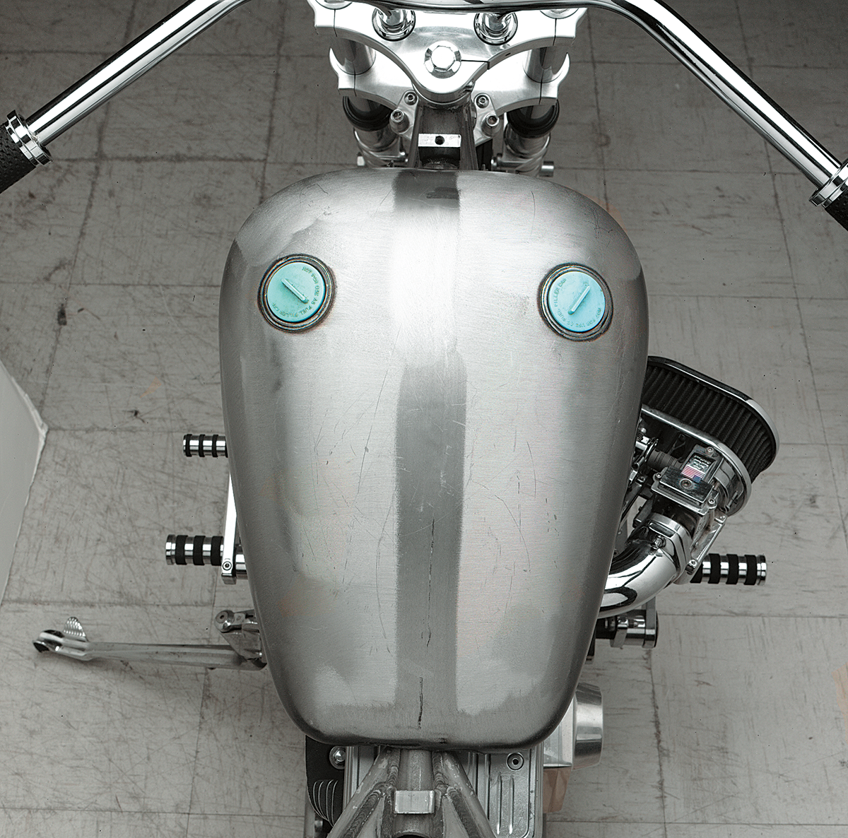 One-piece 3.6-gallon replica of the Harley Fat Bob tank