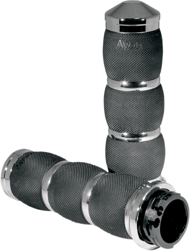 Feature billet end caps and rings with ergonomic AVON seamless rubber grip technology