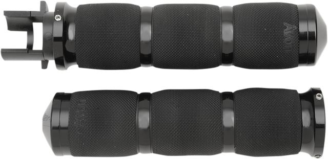 Feature billet end caps and rings with ergonomic AVON seamless rubber grip technology
