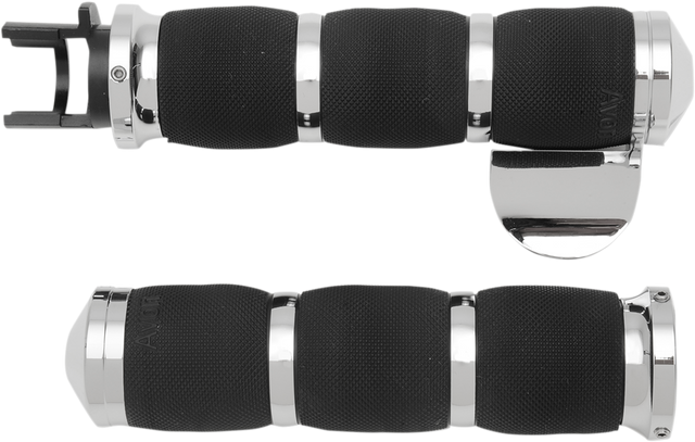 Feature billet end caps and rings with ergonomic AVON seamless rubber grip technology