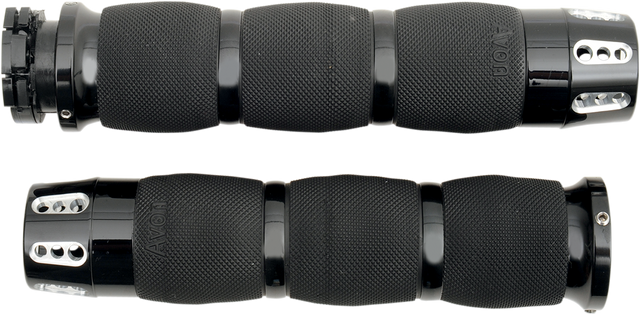 Feature billet end caps and rings with ergonomic AVON seamless rubber grip technology
