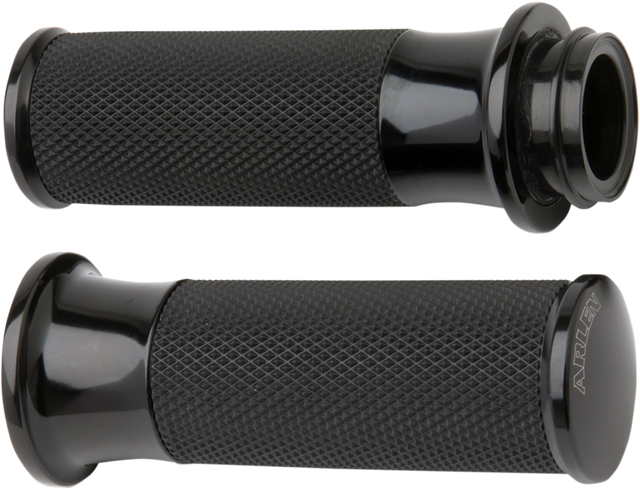 Smooth design features 1-1/4\" billet aluminum inner collars, diamond knurled rubber grips and billet aluminum end caps