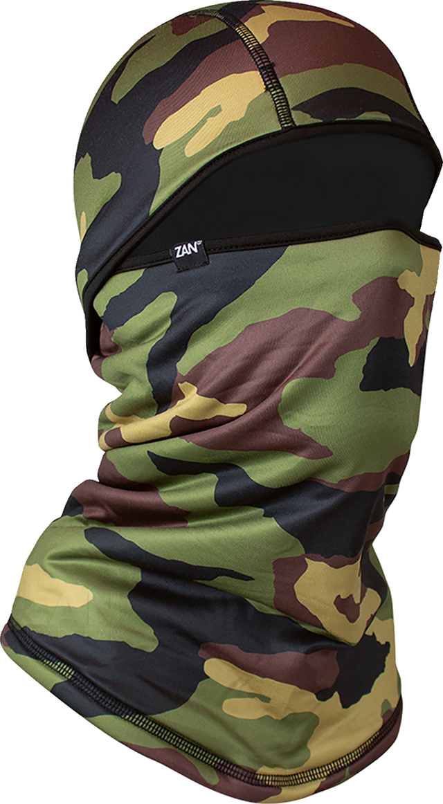 Hinged construction allows for easy use as a balaclava, face mask, neck warmer, hood or in any combination to adapt to various climates