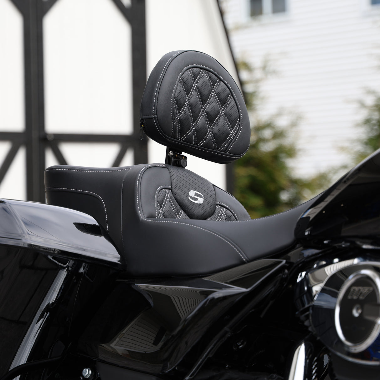 Saddlemen Road Sofa With Back Rest Silver Stitching Diamond Pattern for 2024 HD touring Models