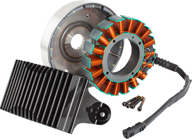 Kit includes stator, rotor, black rectifying voltage regulator and mounting hardware