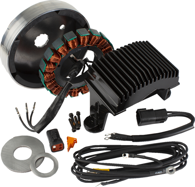 Kit includes stator, rotor, black rectifying voltage regulator and mounting hardware