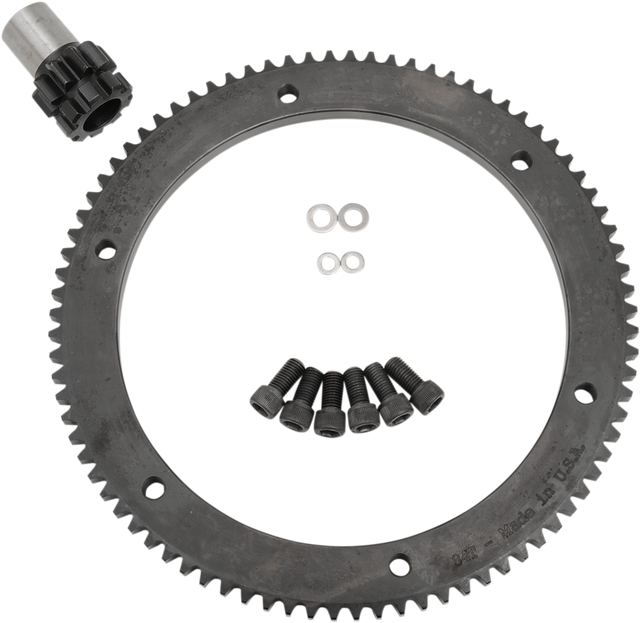 Features a 10-tooth pinion gear and an 84-tooth starter ring gear that produces 15% more starting torque than stock (9:66 ratio) gears