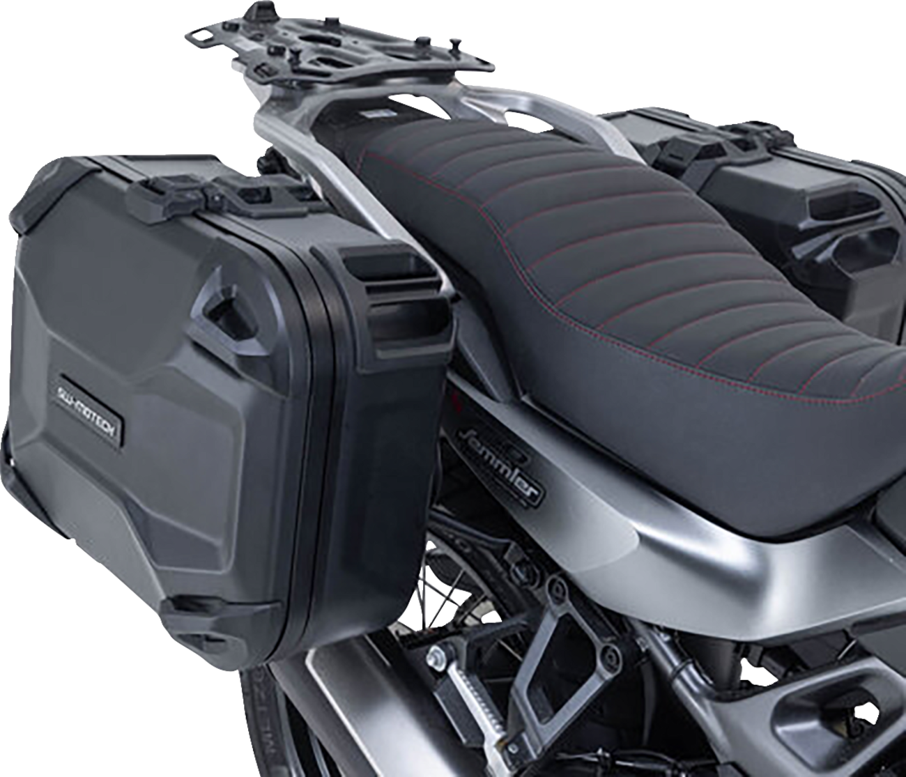 The bike-specific carriers and size of the cases are designed to perfectly match the shape of the tail as well as the motorcycle\'s exhaust system