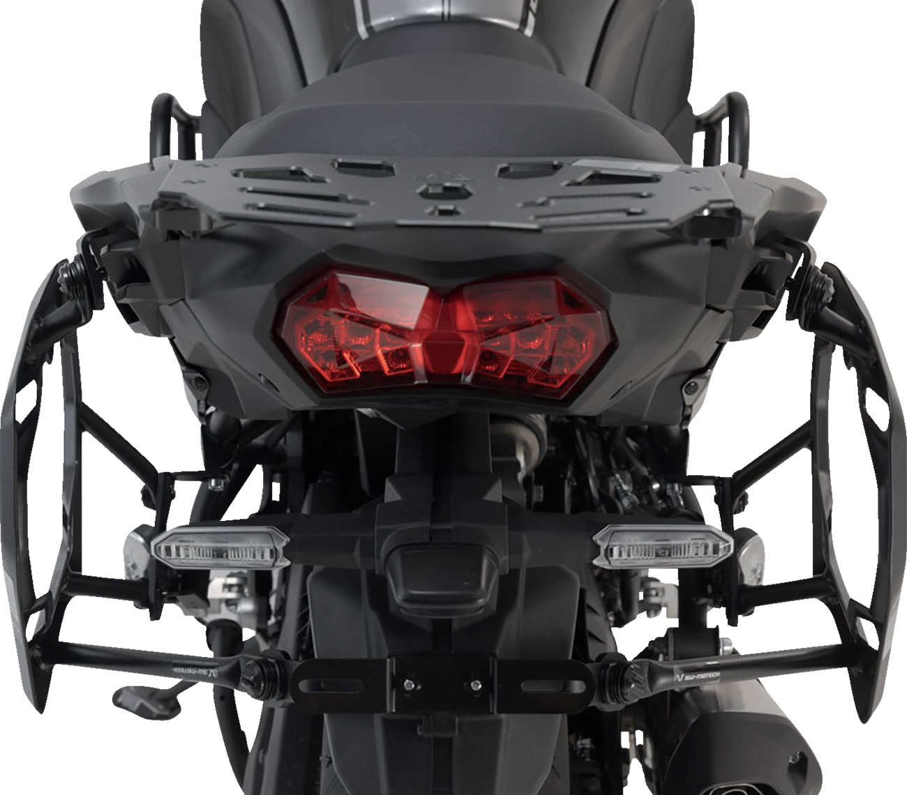 The bike-specific carriers and size of the cases are designed to perfectly match the shape of the tail as well as the motorcycle\'s exhaust system