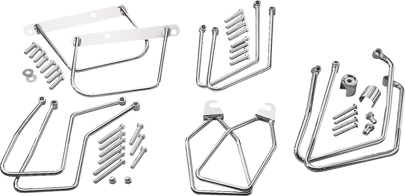 Chrome-plated steel brackets hold throw-over saddlebags away from brake caliper and swingarm