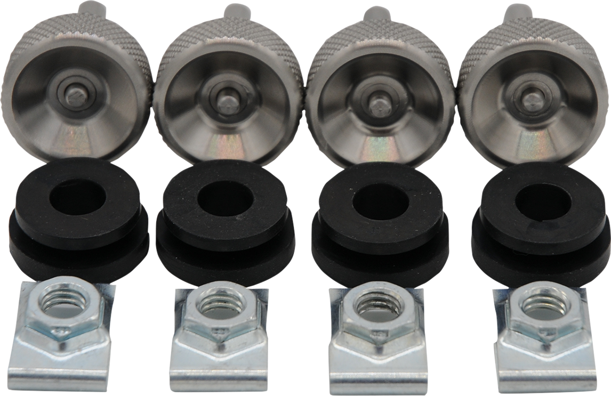 Four unit kit contains: 4 u-nuts, 4 grommets, instructions