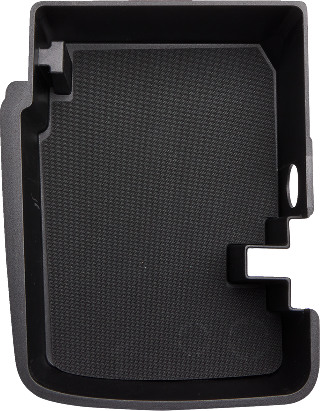Custom-molded plastic tray stores valuables in the top rear section of saddlebags for ease in access