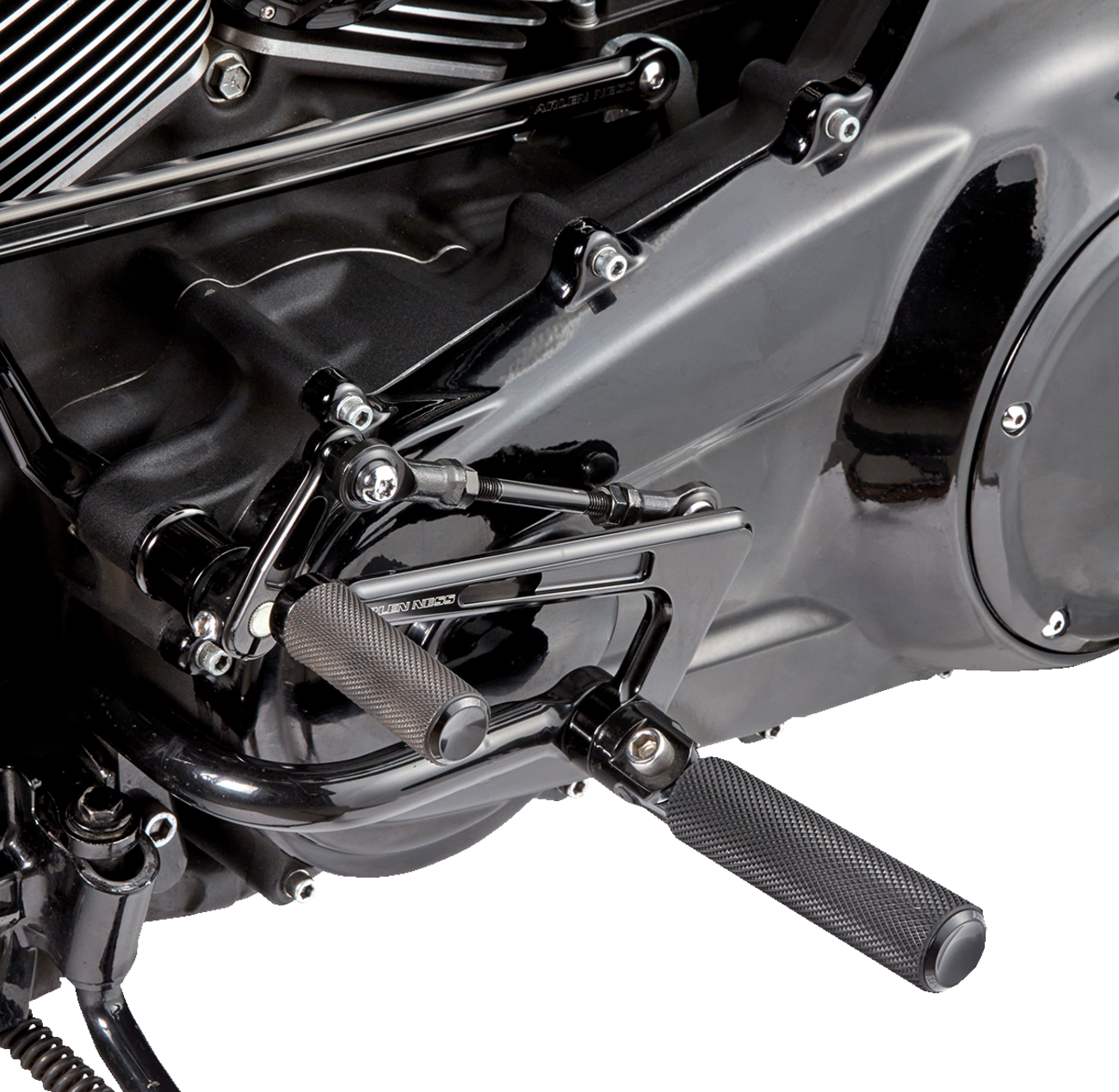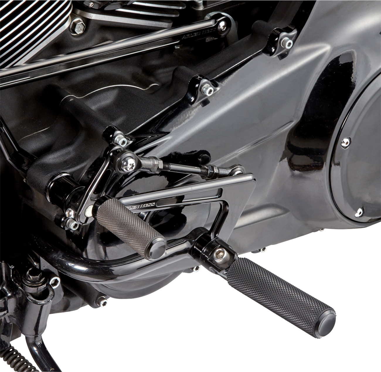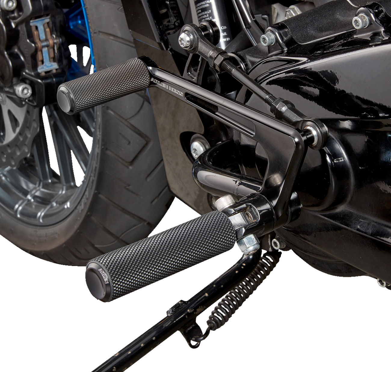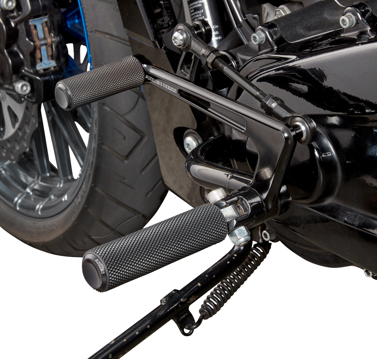 Brings foot controls to a mid-control position, which increases ground clearance and puts the rider in a more aggressive riding position