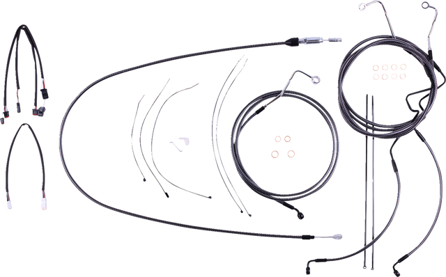 Kit includes – Premium brake lines, clutch cable or hydraulic clutch line, throttle and idle cables or throttle-by-wire extensions, hardware, and fully terminated or plug-and-play switch and turn signal extensions