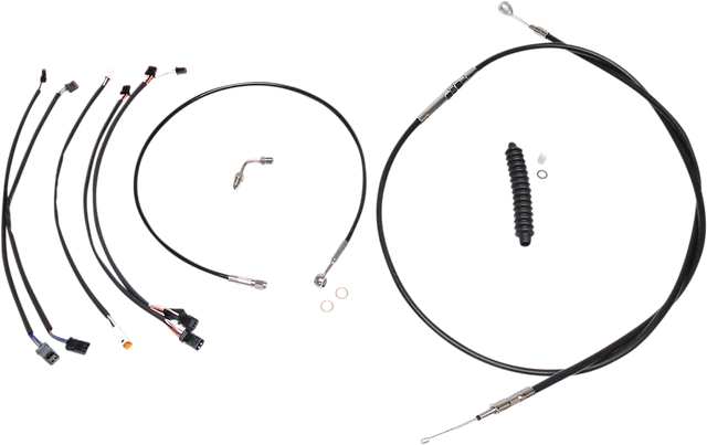 Kit includes throttle and idle cables or throttle-by-wire extensions, clutch cable or XR hydraulic clutch line, XR brake lines, copper crush washers, hardware, turn signal and switch wiring extensions