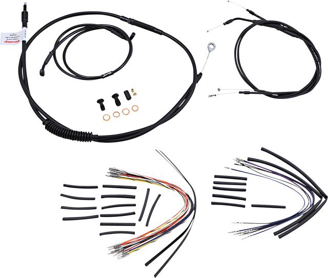 Kit includes extended brake line (unless noted), extended clutch cable/clutch line, extended throttle/idle cables as required and all necessary wiring