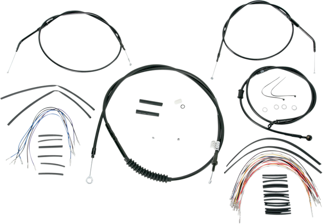 Kit includes extended brake line (unless noted), extended clutch cable/clutch line, extended throttle/idle cables as required and all necessary wiring